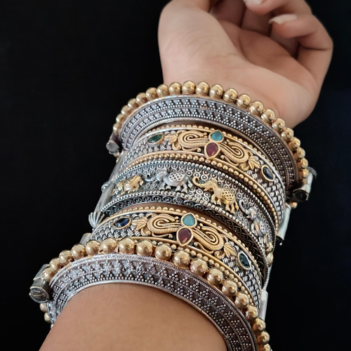 Bridal Oxidized Bangles Set with Multicolor Stones | Heavy Ethnic Jewelry for Women