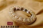 Discover timeless elegance with this handcrafted gold bangle featuring intricate kundan work and delicate pearls. Perfect for weddings, festive wear, and special occasions. Shop premium craftsmanship with SAJ Jewellery.