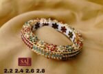 Enhance your ethnic charm with these beautifully crafted gold bangles adorned with multicolor stones. Perfect for weddings, festive occasions, and timeless traditional styling.