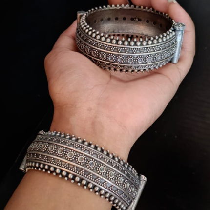 Oxidized Silver Kada for Women | Traditional Ethnic Statement Bangle