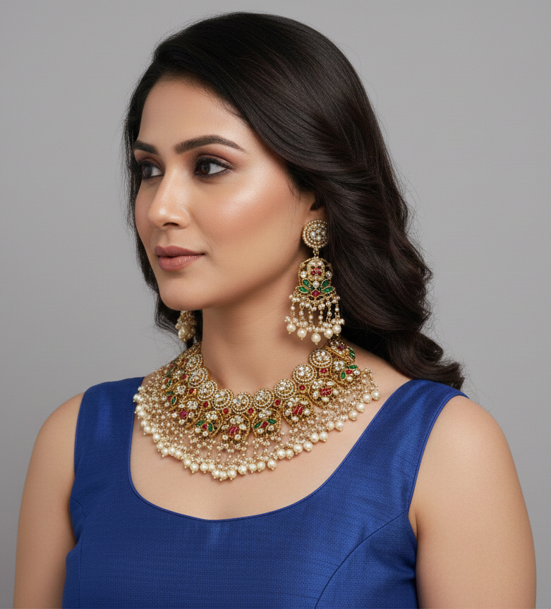 Elegant Bridal Jewelry Set | Handcrafted Kundan & Pearl Collection