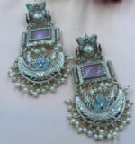 Shop stunning oxidised statement earrings with lotus motifs & pearl drops. Perfect ethnic jewelry for weddings. Grab these traditional earrings for a royal festive look!