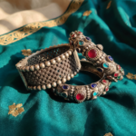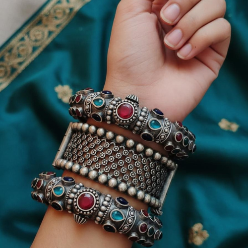 Elevate your ethnic look with oxidized silver kadas featuring vibrant multicolor stones. Perfect for weddings, festivals & traditional outfits. Stylish, bold & comfortable