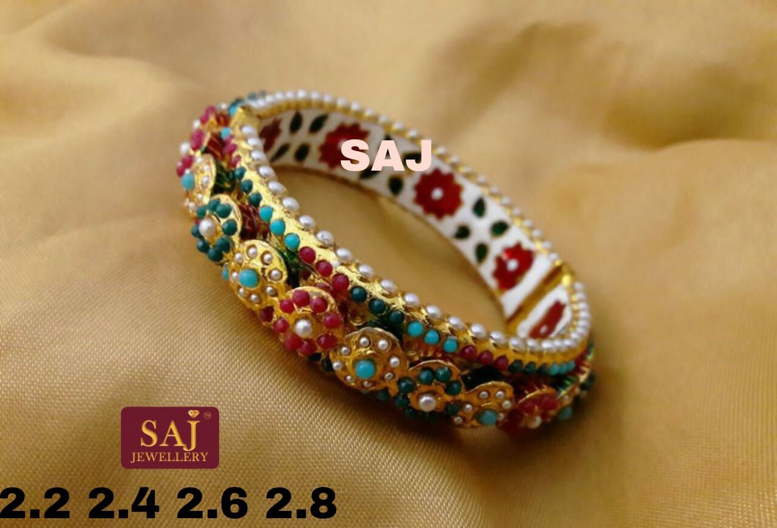 Elevate your festive and bridal look with this stunning multicolor Kundan bangle. Crafted with intricate detailing and premium finish, perfect for weddings, parties, and traditional wear.