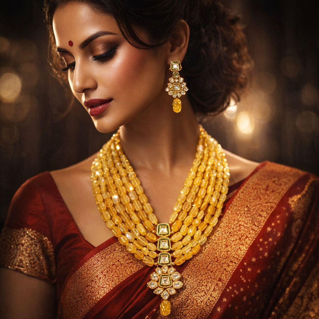 Golden Yellow Layered Necklace & Pendant Set | Traditional Jewellery
